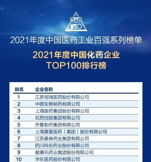 此前,J9集团医药已经连续多年入选“中国化药企业TOP100排行榜”,自2018年起名列首位,今年再度蝉联榜首。